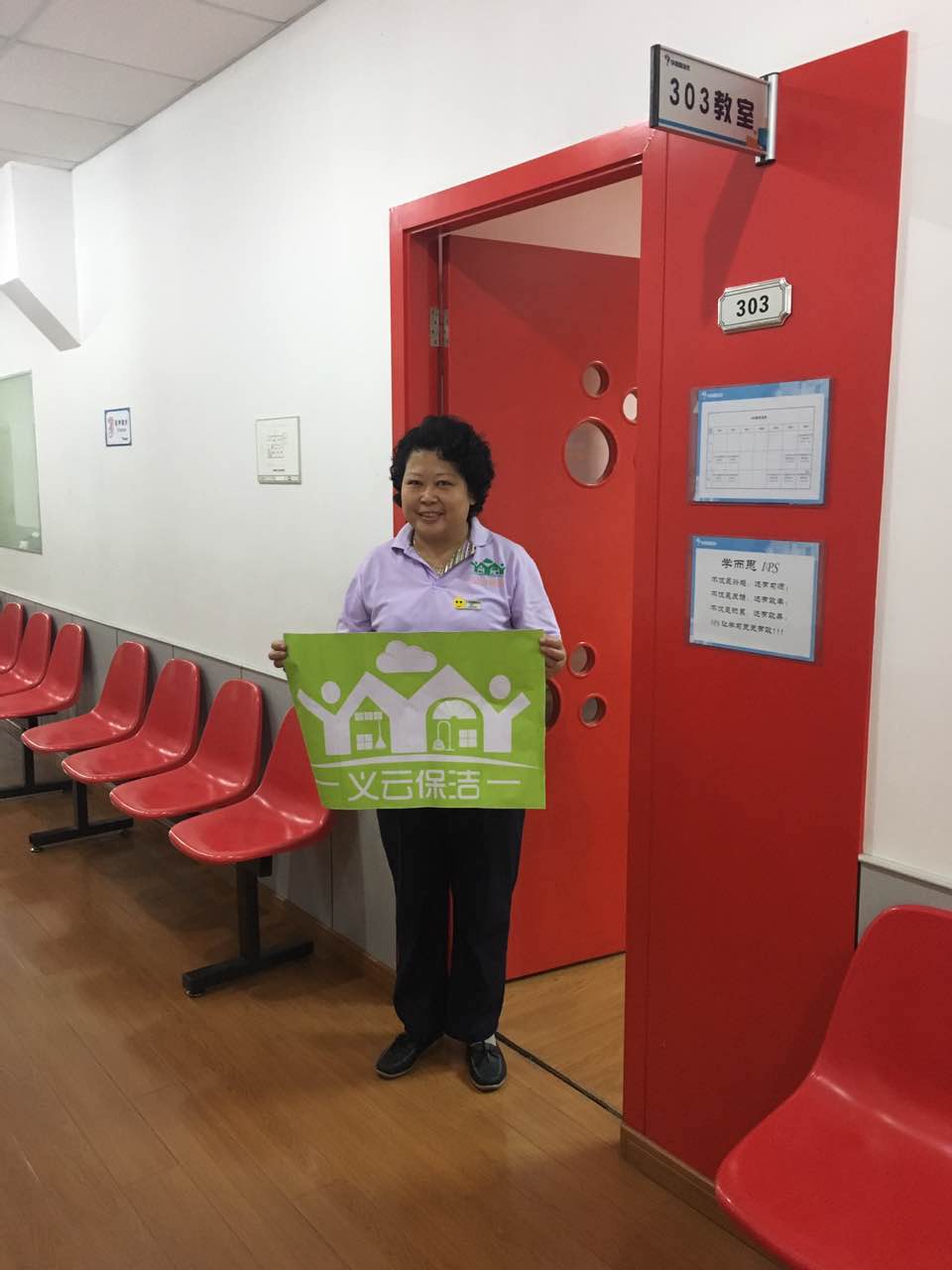 遇见老师与学生家长,以微笑示人,把保洁工作做好的同时,时刻注意与老师家长之间礼仪态度,为老师,学生,家长共同营造一个舒适整洁的学习环境。为每一位师生尽心每一天!