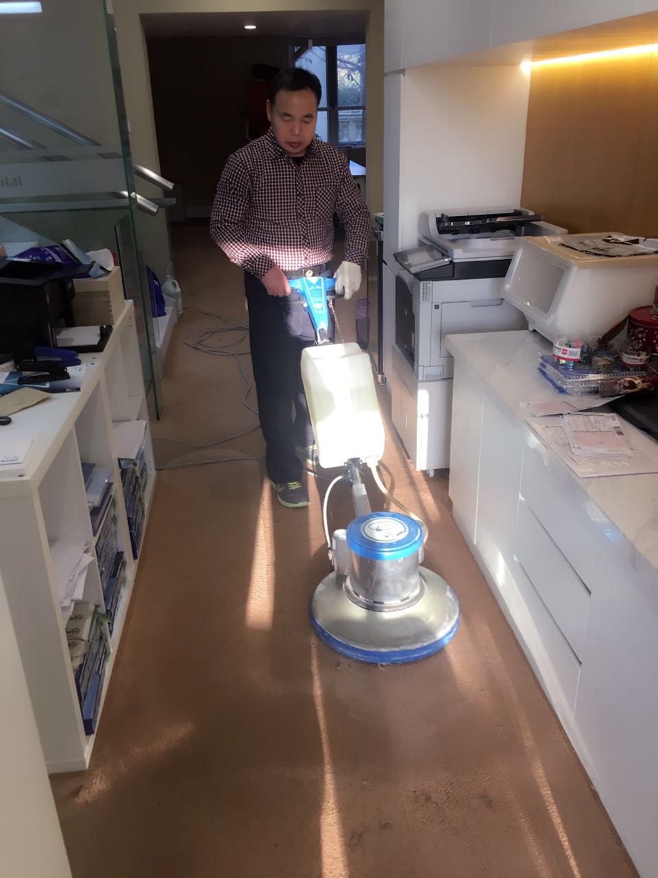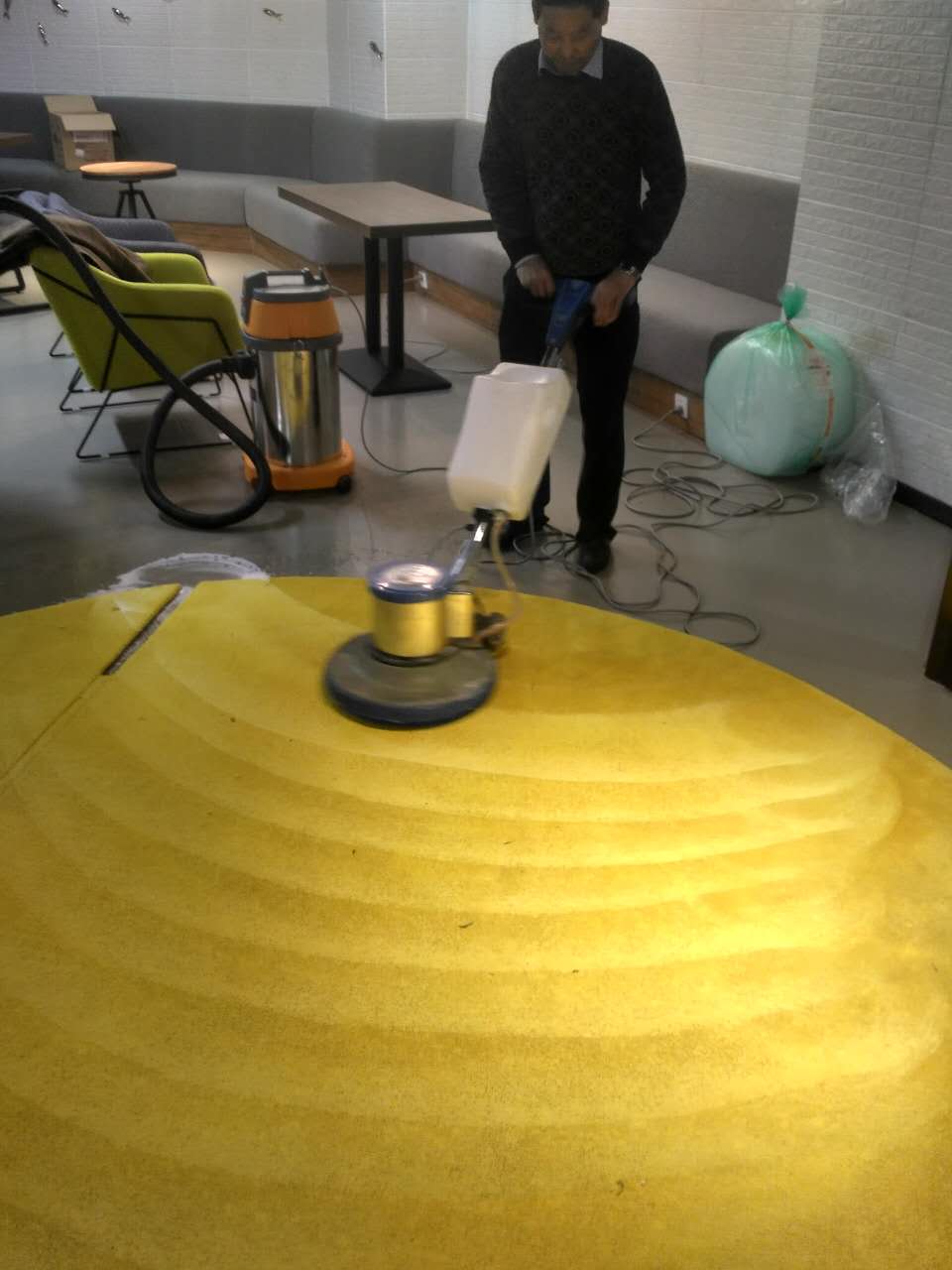 4.使用地毯清洗剂自动喷水,擦洗,吸水,吸泡,从里到外清洁地毯,不要留下空位。